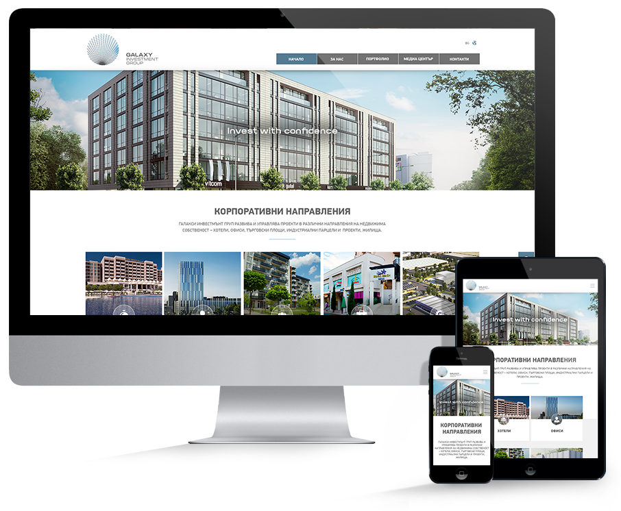 Корпоративният сайт на Galaxy Investment Group съдържа основни направления, улесняващи клиентското търсене. Дизайнът е модерен и лесен за ползване, а посетителите на сайта могат да получат подробна информация за компанията, екипа, проектите и събитията около нея.